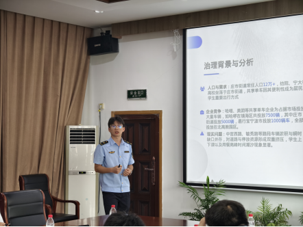 “目前,莊市是鎮(zhèn)海區(qū)內(nèi)共享單車投放數(shù)量最多的轄區(qū),我們面對單車‘圍城’問題,堅持服務優(yōu)先、包容審慎、協(xié)同共治、數(shù)字賦能的原則,通過‘人防+技防+法治’打出了一套治理組合拳。”莊市中隊作為本期主講單位,通過治理前后對比案例,一張張數(shù)據(jù)圖表,分享了在共享單車治理方面的工作經(jīng)驗和創(chuàng)新舉措,清晰呈現(xiàn)了治理路徑與工作成效,量化投放、校企共治、志愿聯(lián)盟等具體做法引發(fā)了在場同仁的濃厚興趣。