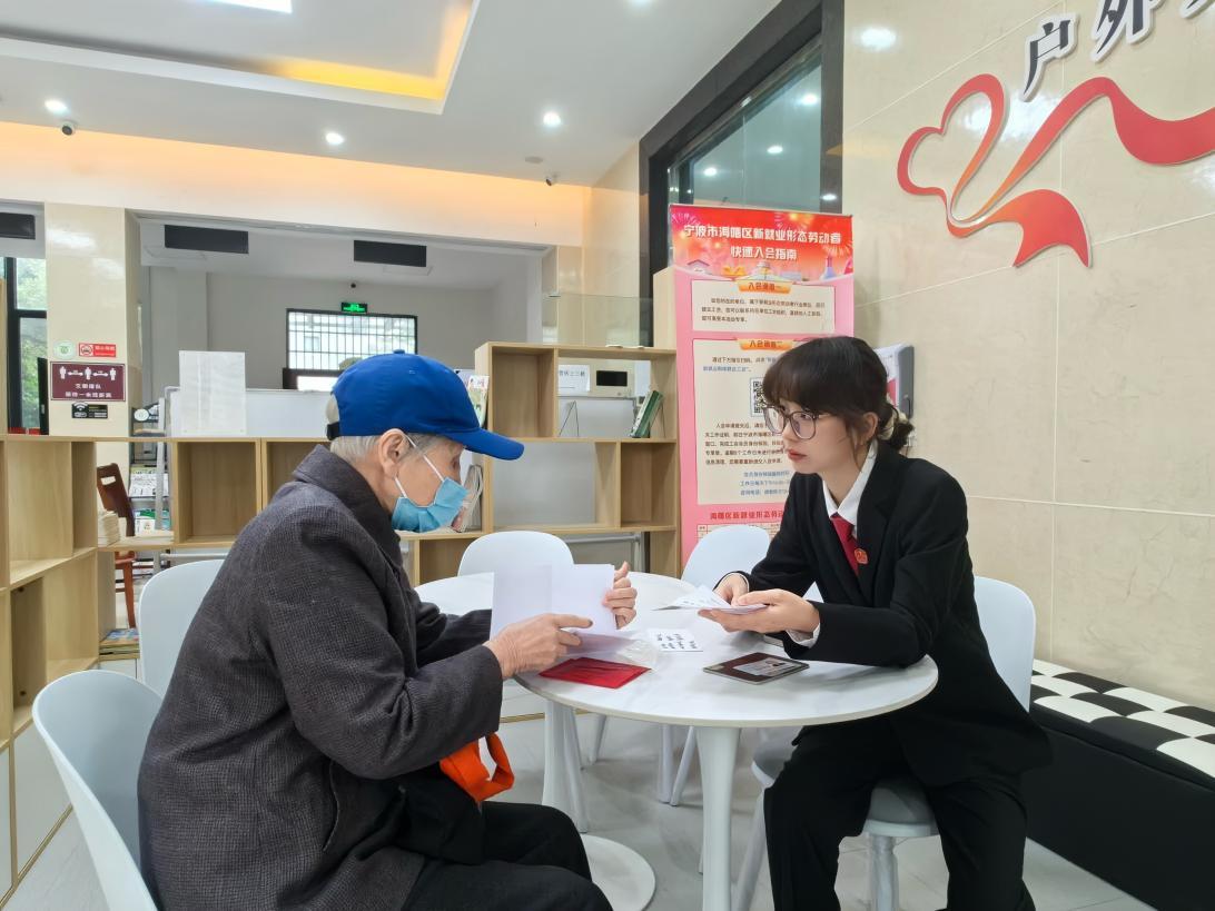 重陽節(jié)來臨之際,浙江省寧波市海曙區(qū)人民法院鄞江法庭組織干警開展“防范養(yǎng)老詐騙 守護(hù)幸福晚年”主題普法宣傳活動。圖為鄞江法庭干警向老年人講解防詐知識。韓青蕾 攝