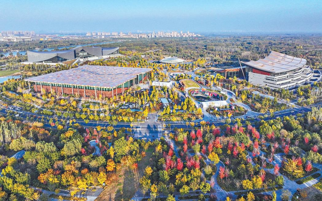 北京城市副中心三大文化建筑秋色如畫(航拍照片)。 攝影 常鳴