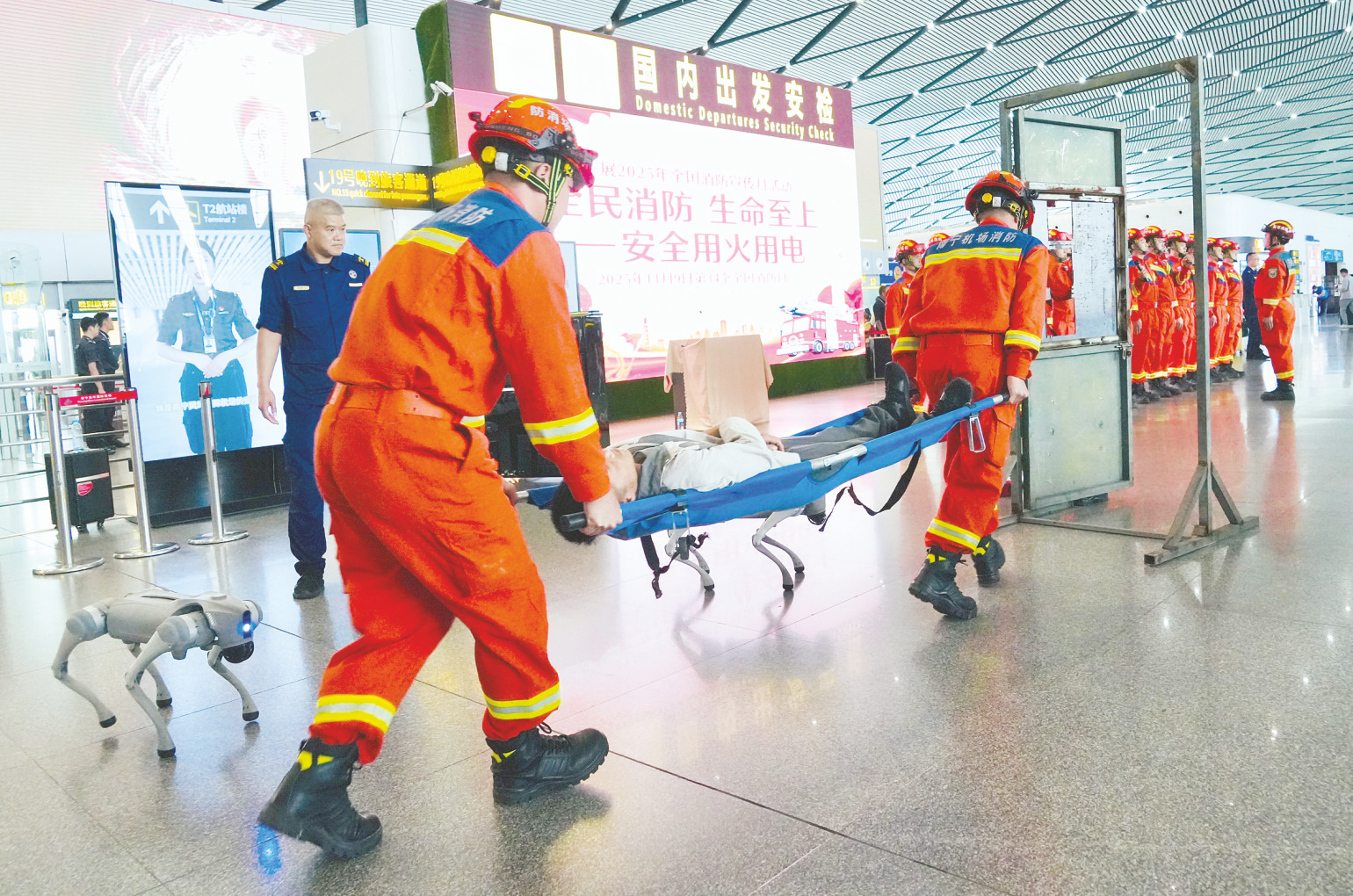 啟動儀式上,南寧機(jī)場消防救援人員與南寧數(shù)字科技學(xué)院師生將廣西特色民族歌舞與消防救援主題相融,盡顯獨(dú)特魅力。此外,南寧經(jīng)開區(qū)消防大隊(duì)消防救援人員還現(xiàn)場展示了智能消防機(jī)器狗具備的地形穿梭、火情偵察等技能,讓人們直觀感受科技賦能消防救援的威力。