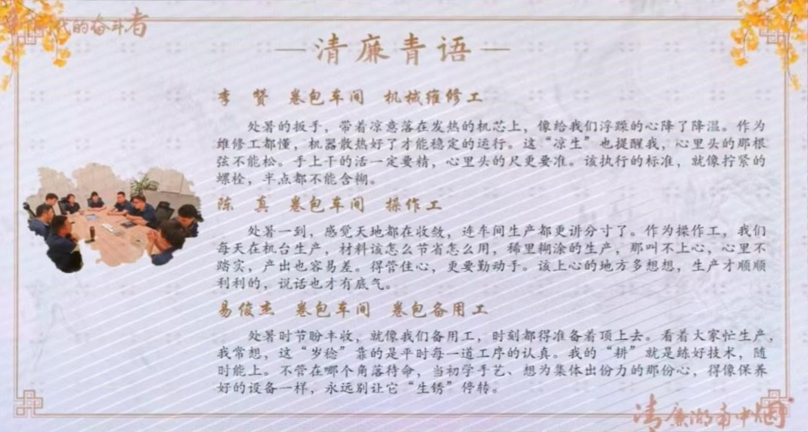 圖為卷包車間大屏播放“節(jié)氣說廉”欄目