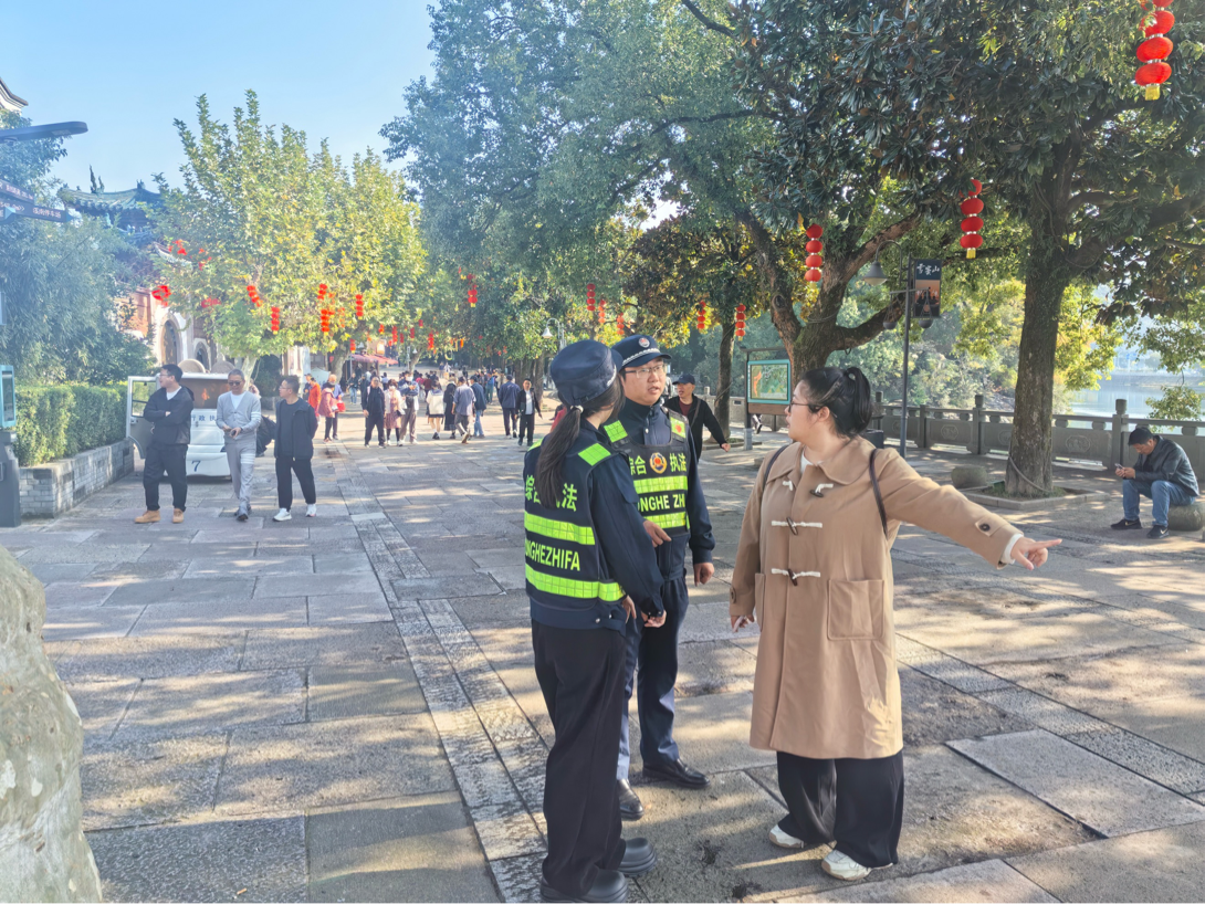 針對預判到的秋假旅游高峰,執(zhí)法隊提前部署、周密安排,制定專項保障方案。通過增派執(zhí)法力量,在景區(qū)主要入口、停車場、熱門景點及商業(yè)街區(qū)等重點區(qū)域實行“定點值守+機動巡查”相結合的模式,實現管理全覆蓋、響應無延遲。同時,加強與公安、交警等部門的聯(lián)動協(xié)作,構建信息互通、力量互補的協(xié)同機制,為應對各類突發(fā)情況、維護游覽秩序奠定了堅實基礎。