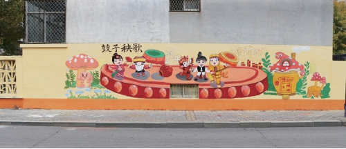 為讓墻繪作品既貼合城市文明建設(shè)要求,又貼近民生、便于傳播,雙方多次深度對接:一方面將垃圾分類、街巷環(huán)境提升等城管重點工作轉(zhuǎn)化為生動畫面,讓市民在觀賞中直觀了解城管工作;另一方面融入濟陽地標(biāo)、特色農(nóng)副產(chǎn)品、鼓子秧歌等本土元素,將抽象文明理念與地域文化轉(zhuǎn)化為場景化視覺內(nèi)容,增強群眾認同感。