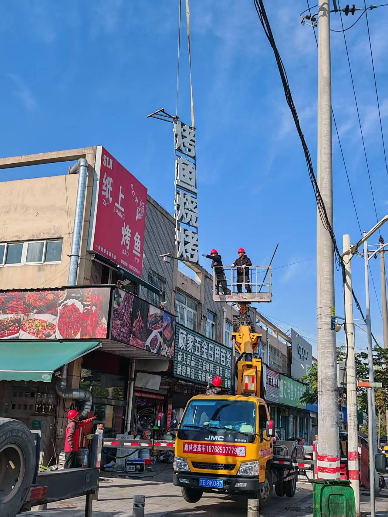前期充分溝通后,執(zhí)法隊(duì)也對(duì)拆除工作做好充分準(zhǔn)備,在拆除點(diǎn)位四周拉起警戒線,將破舊銹蝕的廣告牌從高空緩緩卸下,同時(shí)設(shè)置了臨時(shí)交通疏導(dǎo)點(diǎn),執(zhí)法人員提醒過往市民和車輛注意安全。由于樓頂廣告位置高、體積大,執(zhí)法隊(duì)組織專業(yè)人員和大型吊裝設(shè)備進(jìn)行拆除,采取“機(jī)械+人工”方式全程規(guī)范操作,確保萬無一失。此次總計(jì)拆除廣告牌11處。