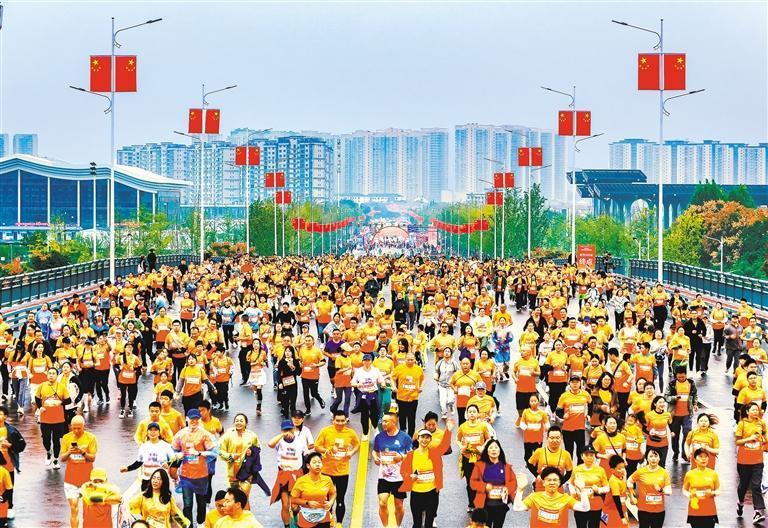 10月19日,2025宜都半程馬拉松開(kāi)賽。5500余名選手在長(zhǎng)江、清江交匯處激情奔跑。劉傳東攝(中經(jīng)視覺(jué))