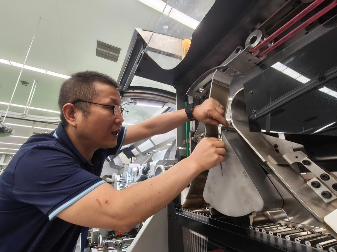 圖為車間細支煙設(shè)備調(diào)試現(xiàn)場