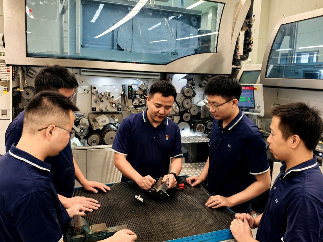 面對高速細支卷煙新產(chǎn)線調(diào)試難題,設(shè)備效率未完全有效發(fā)揮,成為制約產(chǎn)能釋放的“卡脖子”問題。關(guān)鍵時刻,車間維修班黨支部迅速成立“黨員技術(shù)攻關(guān)突擊隊”,由黨支部書記馬峰帶隊,6名黨員技術(shù)骨干接續(xù)奮戰(zhàn)。