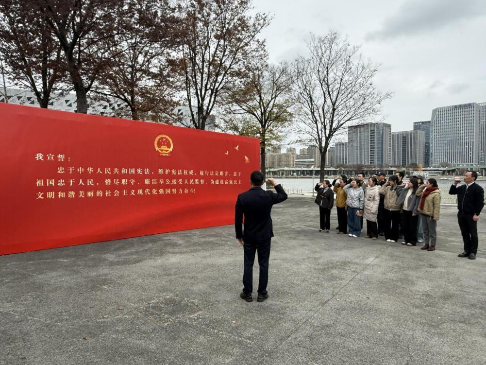 為深入學(xué)習(xí)宣傳憲法精神,推動(dòng)法治文化融入城市發(fā)展肌理,近日,浙江省慈溪市自然資源和規(guī)劃局以憲法宣傳月為契機(jī),在慈溪市城市展示館創(chuàng)新舉辦“弘揚(yáng)憲法精神 共建法治慈溪”主題普法活動(dòng),通過“儀式感+沉浸式+互動(dòng)性”的多元形式,讓嚴(yán)肅的憲法知識變得可感可觸,切實(shí)筑牢市民法治信仰根基。