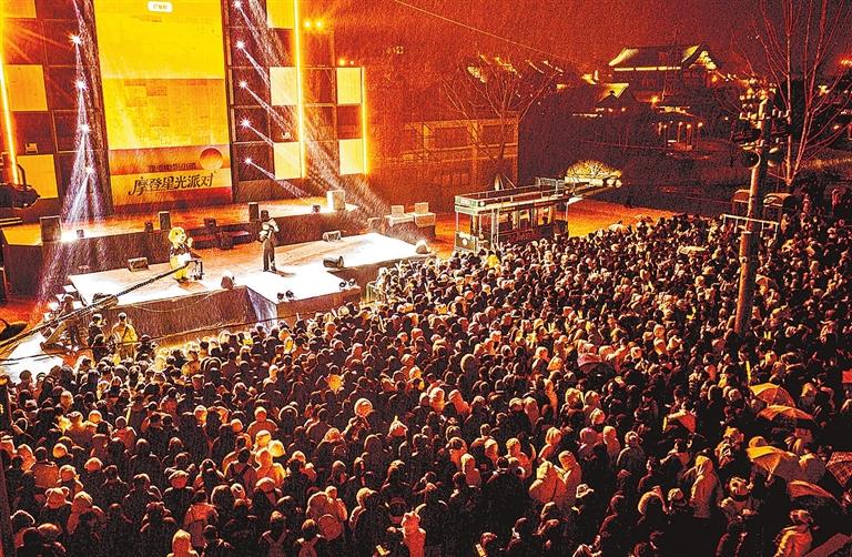 1月1日凌晨,建業(yè)電影小鎮(zhèn)摩登星光派對(duì)現(xiàn)場(chǎng)人山人海。游客在復(fù)古廣場(chǎng)音樂會(huì)釋放激情,在彩帶雨中定格跨年記憶。本報(bào)記者聶冬晗攝