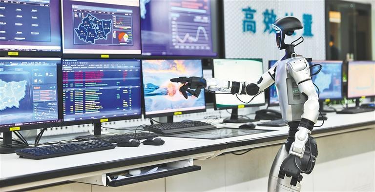 位于湖北省襄陽(yáng)市的國(guó)網(wǎng)襄陽(yáng)供電公司江北集控站監(jiān)控大廳內(nèi),人形機(jī)器人專注“盯屏”。它能自動(dòng)生成故障處置建議,遇到緊急情況還能自主撥打通知電話,讓事故分析從15分鐘縮短到秒級(jí),故障處置準(zhǔn)確率提升70%以上。王虎攝(中經(jīng)視覺)