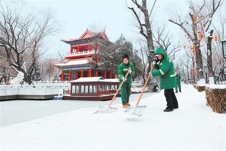 環(huán)衛(wèi)工人及時清雪除冰 保障群眾日常出行安全