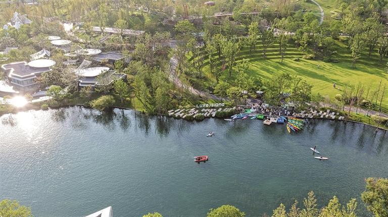 通過補齊基礎(chǔ)設(shè)施短板、重塑生態(tài)與公共空間,如今,蜿蜒的水線上,皮劃艇劃破粼粼波光,蕩漾著水面下的蔥蘢綠意。不遠處的動物農(nóng)場,孩童的歡笑與鹿鳴聲交織,草坪上市民在扎帳篷露營……2000畝公園水系與人的活動深度交融,勾勒出一幅“城水共生、主客共享”的生動畫卷。