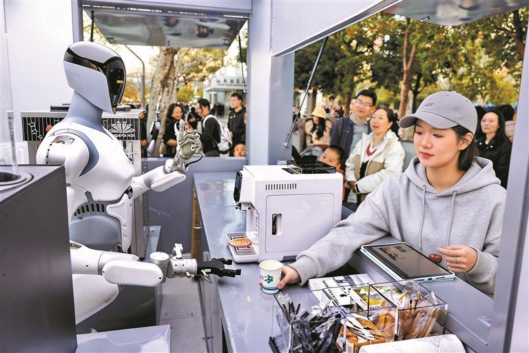 深圳人才公園的智平方機(jī)器人憑借靈活的機(jī)械臂現(xiàn)場為游客制作咖啡。深圳特區(qū)報(bào)記者 周紅聲 潘康 曹鵬飛 攝