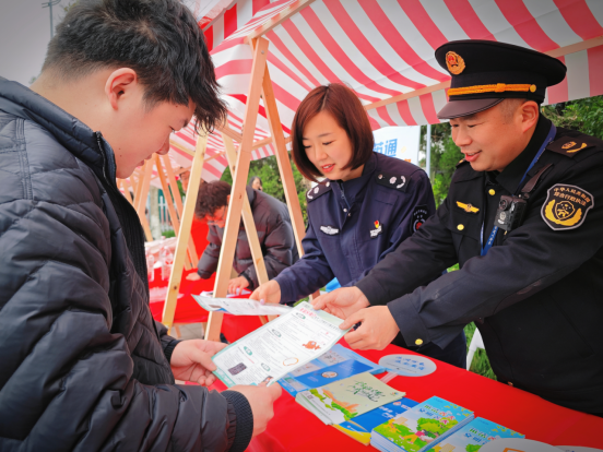 執(zhí)法人員向市民發(fā)放燃?xì)獍踩褂檬謨?cè)