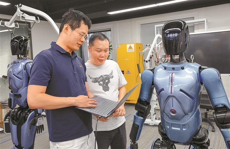 當(dāng)前,深圳人工智能飛速發(fā)展,融入市民生活、賦能產(chǎn)業(yè)升級。圖為南山區(qū)一家科技公司內(nèi),研發(fā)團(tuán)隊正加緊調(diào)試機器人產(chǎn)品,為產(chǎn)品迭代與場景化落地做準(zhǔn)備。深圳特區(qū)報記者 周紅聲 攝