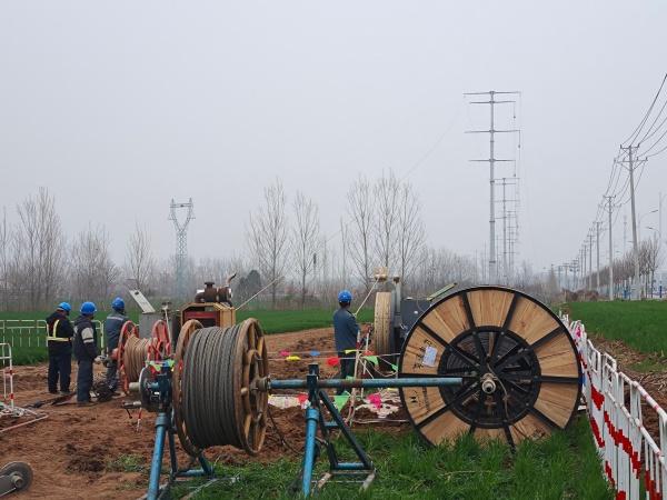 3月23日,在河南省漯河市平漯周高鐵漯河西牽引站220千伏外部供電工程現(xiàn)場,國網(wǎng)漯河供電公司施工人員正在進(jìn)行220千伏Ⅰ尊英線地線更換光纜施工,現(xiàn)場緊線、掛線、附件安裝等工作有序進(jìn)行。與此同時(shí),平漯周高鐵孟寨牽引站220千伏外部供電工程(喬董還建)也正在進(jìn)行N29-N31組塔施工。