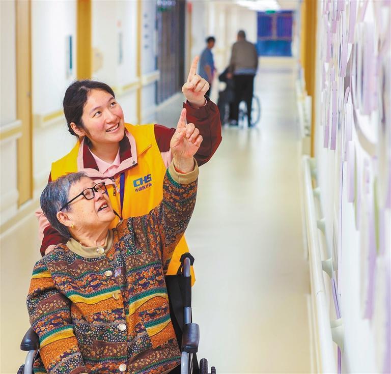 2025年11月11日,浙江省湖州市德清縣德馨怡養(yǎng)院,護(hù)理員陪伴老人做記憶訓(xùn)練。姚海翔攝(中經(jīng)視覺)