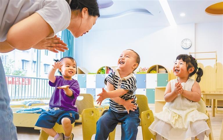 2025年6月11日,安徽省蕪湖市繁昌區(qū)繁陽(yáng)托育服務(wù)中心,小朋友在老師的陪伴下玩游戲。目前,我國(guó)共有12.6萬(wàn)家托育服務(wù)機(jī)構(gòu),今年中央財(cái)政將安排近1000億元育兒補(bǔ)貼補(bǔ)助資金。肖本祥攝(中經(jīng)視覺)