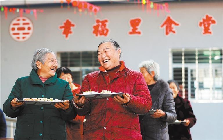 1月15日,老人在湖北省荊門市東寶區(qū)石橋驛鎮(zhèn)上泉村“幸福里食堂”用餐。全國(guó)已建近8萬(wàn)個(gè)老年助餐點(diǎn),每天有300多萬(wàn)老人就餐。趙平攝(中經(jīng)視覺)