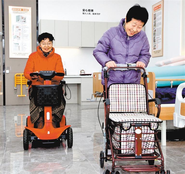 2月27日,老人在江蘇省徐州市鼓樓區(qū)豐財(cái)街道適老化改造體驗(yàn)中心內(nèi)體驗(yàn)適老助行產(chǎn)品。2025年我國(guó)銀發(fā)經(jīng)濟(jì)規(guī)模接近10萬(wàn)億元,適老化產(chǎn)品種類從不足千種躍升至萬(wàn)余種。蒯創(chuàng)攝(中經(jīng)視覺)