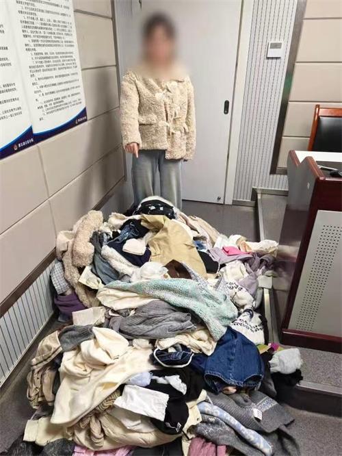 圖為犯罪嫌疑人“薅”來的一堆衣物