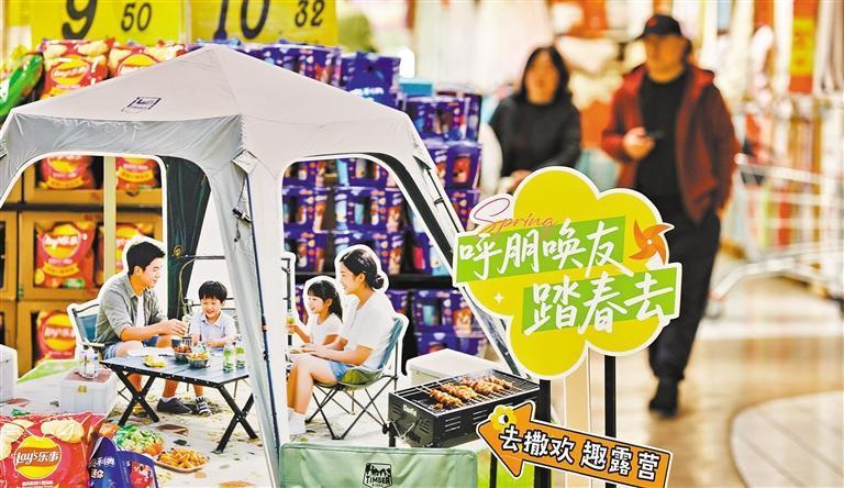 3月14日,浙江省嘉興市南湖區(qū)一大型商超,消費者在選購露營商品。金鵬 攝(中經(jīng)視覺)