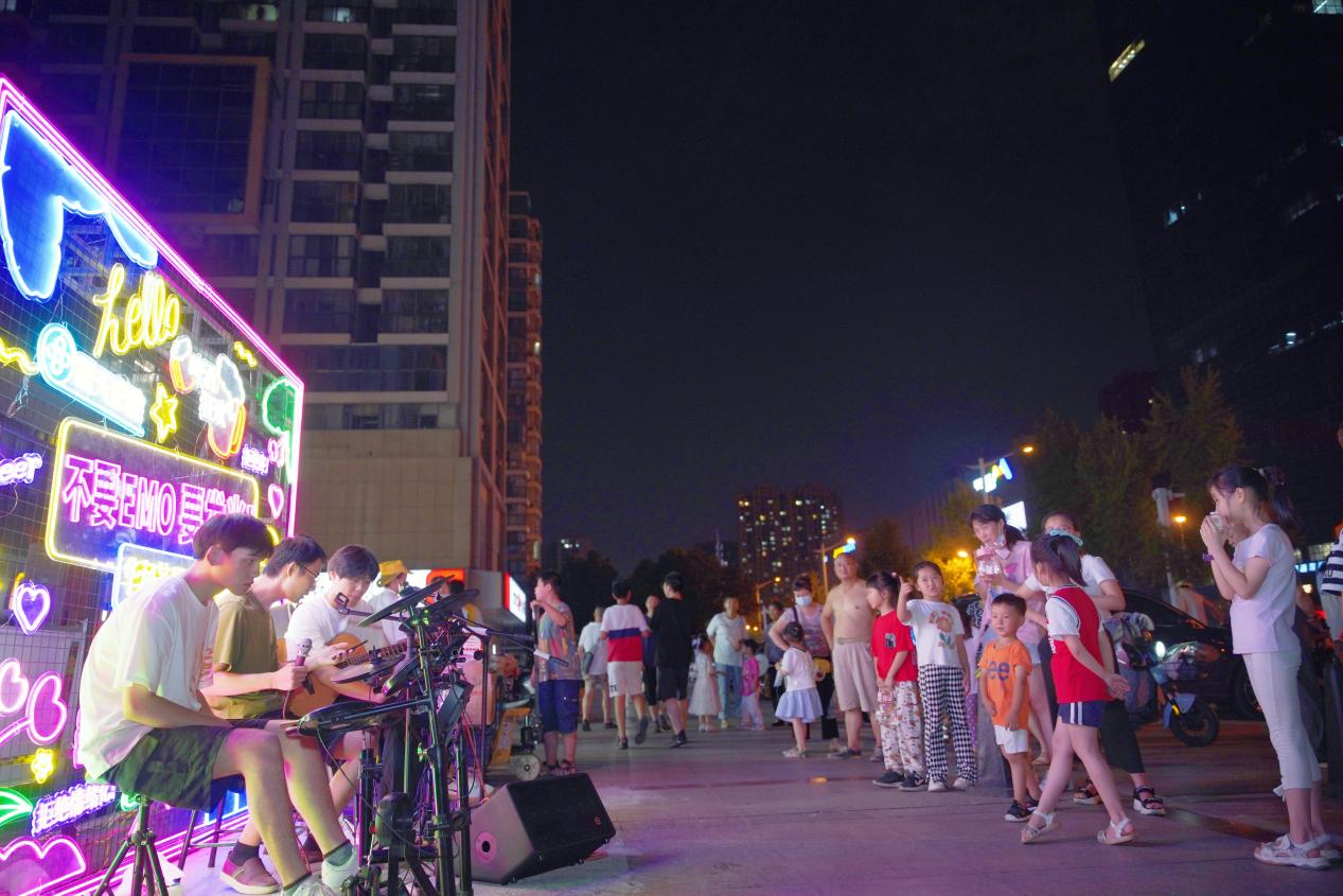 近日,夜幕降臨后的華潤蘇果天元東路店,顯得格外熱鬧。廣場上小吃攤位、后備箱攤位、套圈、扎氣球、歌手駐唱等項(xiàng)目吸引了不少消費(fèi)者駐足?,F(xiàn)場售賣的章魚小丸子、辣炒年糕、水果撈、榴蓮、烤香腸、涼粉、涼皮、啤酒、鐵板魷魚、小龍蝦等各類美食,得到了不少“吃貨”的好評(píng)?,F(xiàn)場播放的露天動(dòng)畫電影,更是深受小朋友們的喜愛。此外,該門店還邀請(qǐng)了知名樂隊(duì)來到現(xiàn)場駐唱,并在網(wǎng)絡(luò)平臺(tái)直播?!鞍l(fā)光夜市”濃濃的煙火氣息,引來不少直播觀眾打CALL。