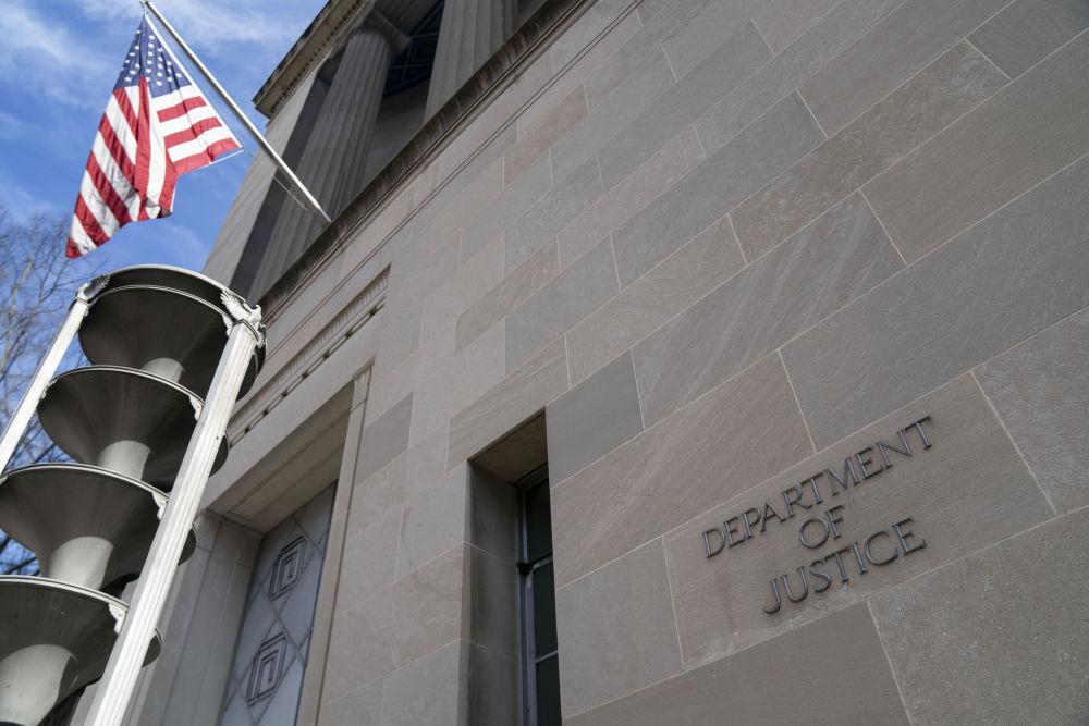 這是2022年3月10日在美國首都華盛頓拍攝的美國司法部大樓。新華社記者劉杰攝