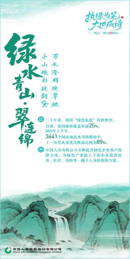 青山鋪卷,金融作筆;執(zhí)筆為綠,大地成詩(shī)。在奔赴“雙碳”目標(biāo)的壯闊征途上,中國(guó)人壽正以中國(guó)式ESG的生動(dòng)實(shí)踐,為全球可持續(xù)發(fā)展貢獻(xiàn)東方智慧,書(shū)寫(xiě)著不負(fù)綠水青山的時(shí)代新篇。