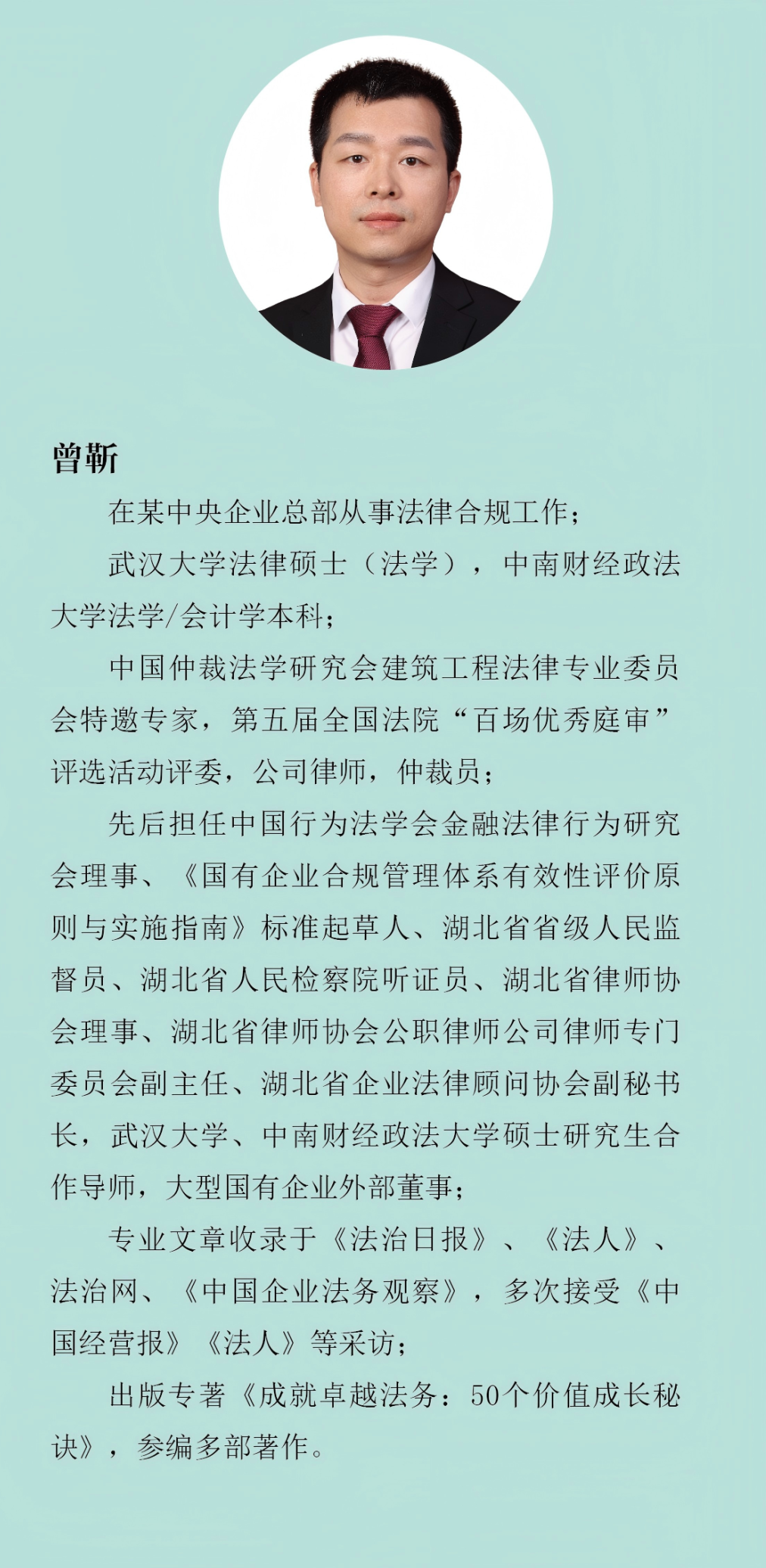 寫書與做學(xué)問一樣,都要講社會責(zé)任。曾靳先后在中南財經(jīng)政法大學(xué)和武漢大學(xué)法學(xué)院深造,受過系統(tǒng)良好的法學(xué)方法訓(xùn)練,投身法務(wù)工作后,依然嚴(yán)格地將公正、嚴(yán)謹(jǐn)、批判和理性等要素內(nèi)嵌于法律思維中,讓這份對法律的熱愛和忠忱幽然生花,熠熠生輝。于此,我欣喜地看見本書的誕生,關(guān)注著他的不斷成長,希望他繼續(xù)心懷使命、筆耕不輟,為構(gòu)建法律職業(yè)共同體承擔(dān)屬于自己的那份責(zé)任。