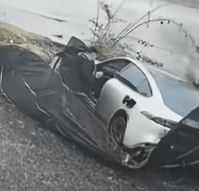 一段網(wǎng)絡(luò)視頻顯示,一輛汽車失控滑入路旁溝里,隨后冒出濃烈黑煙和火焰。車主下車后嘗試打開后車門,但車門無(wú)法從外部開啟。有人員上前砸窗,后排乘客才被救出。