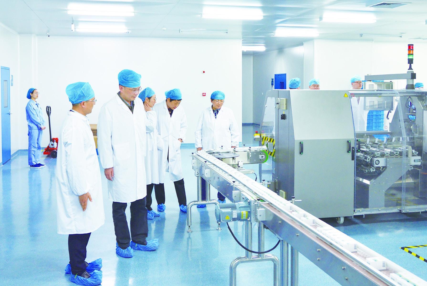 圖為該局調(diào)研組在一家藥品企業(yè)車(chē)間了解藥品生產(chǎn)質(zhì)量管理情況。