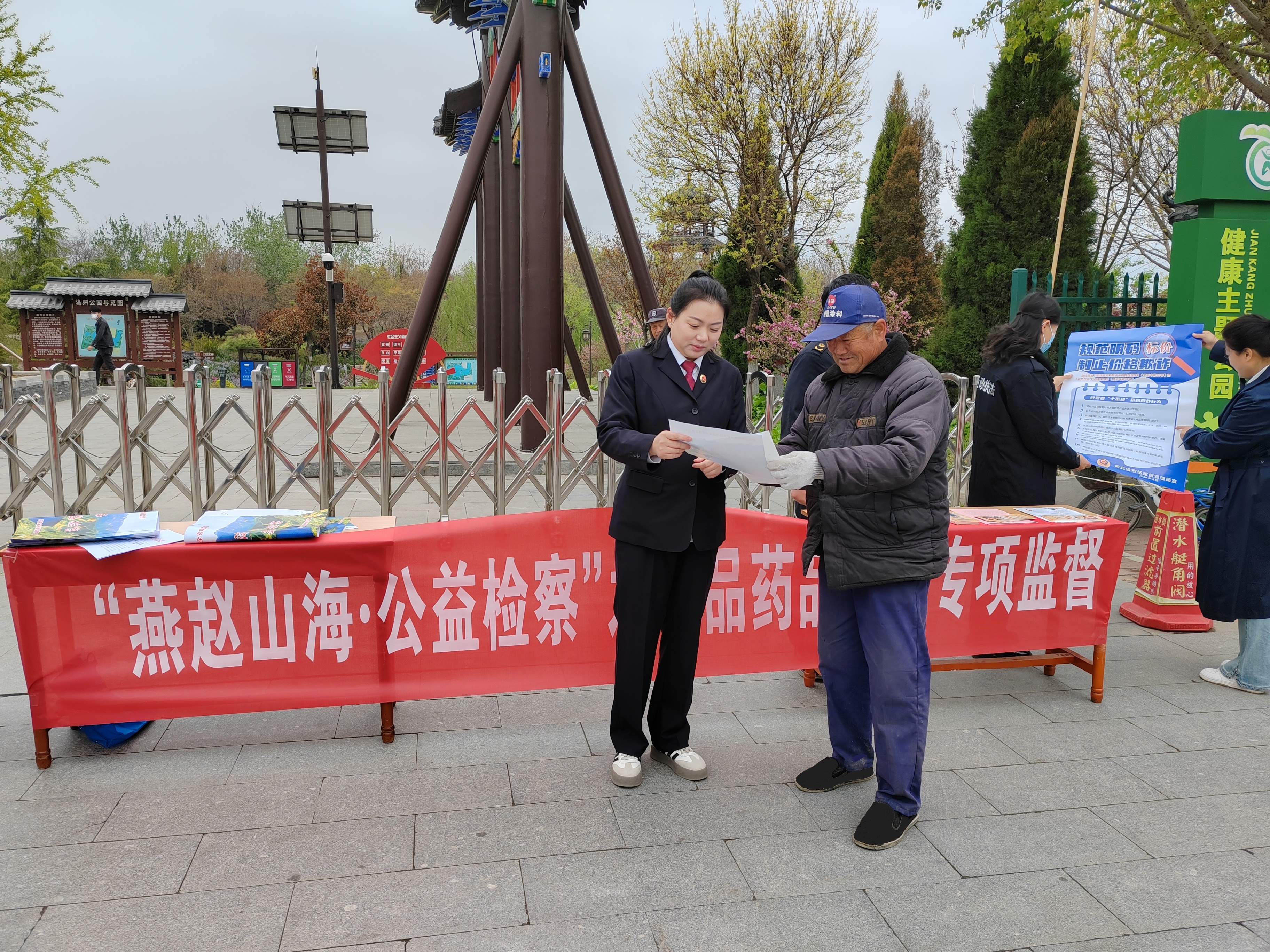 為積極開(kāi)展“公益訴訟走基層、百鎮(zhèn)千村萬(wàn)戶行”專項(xiàng)工作,4月9日,河北省滄州市河間市人民檢察院聯(lián)合河間市市場(chǎng)監(jiān)督管理局到瀛州公園廣場(chǎng)開(kāi)展“燕趙山海·公益檢察”之食品藥品安全專項(xiàng)監(jiān)督宣傳活動(dòng)。