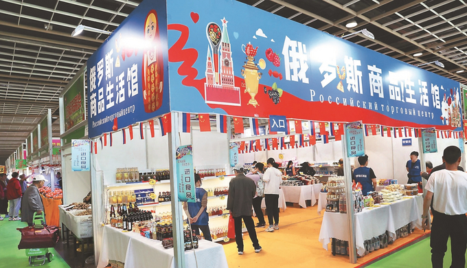 4月27日,第十八屆江蘇春季食品商品展覽會(huì)在南京國(guó)際展覽中心舉行。展會(huì)匯聚全國(guó)各地美食,涵蓋糧油、飲料、干果炒貨等,還開設(shè)了進(jìn)口食品區(qū)。圖為市民在“俄羅斯商品生活館”選購(gòu)。記者 宋寧 攝