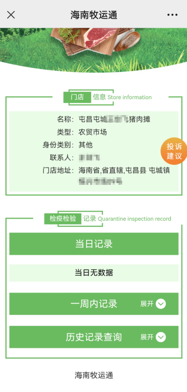 一、消費者在購買畜禽肉時,應(yīng)盡量選擇資質(zhì)齊全、管理規(guī)范的超市、農(nóng)貿(mào)市場等進行選購,并注意查看是否附具“兩證兩章”(即動物產(chǎn)品檢疫合格證、肉品品質(zhì)檢驗合格證、動物檢疫驗訖印章、肉品品質(zhì)檢驗驗訖印章)。當(dāng)前,海南省農(nóng)業(yè)農(nóng)村部門已開展無紙化開具《動物檢疫合格證明》及肉品品質(zhì)檢驗合格證相關(guān)工作,電子證明依托“海南牧運通”小程序開具,消費者可要求商戶展示“海南牧運通”二維碼,通過微信“掃一掃”功能,掃描商戶二維碼查看商戶所售畜禽肉類產(chǎn)品的“兩證”等具體信息。對于進口肉類,可索要并查看入境貨物檢驗檢疫證明。無相關(guān)證章或證章不全的,應(yīng)謹(jǐn)慎選購。