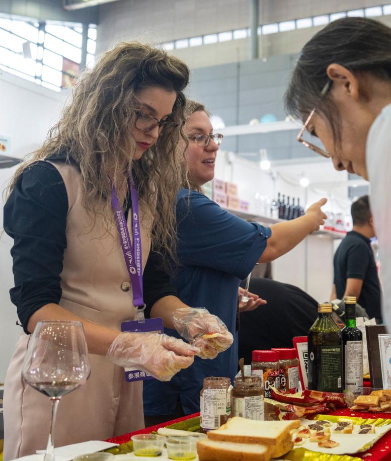9月19日,在長沙國際會(huì)展中心,參展商(左一)在現(xiàn)場制作特色食品。新華社記者 陳思汗 攝