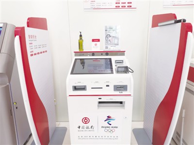 某國有大行網(wǎng)點智能機(jī)具上方放有數(shù)字人民幣標(biāo)識。 |
