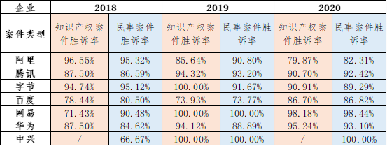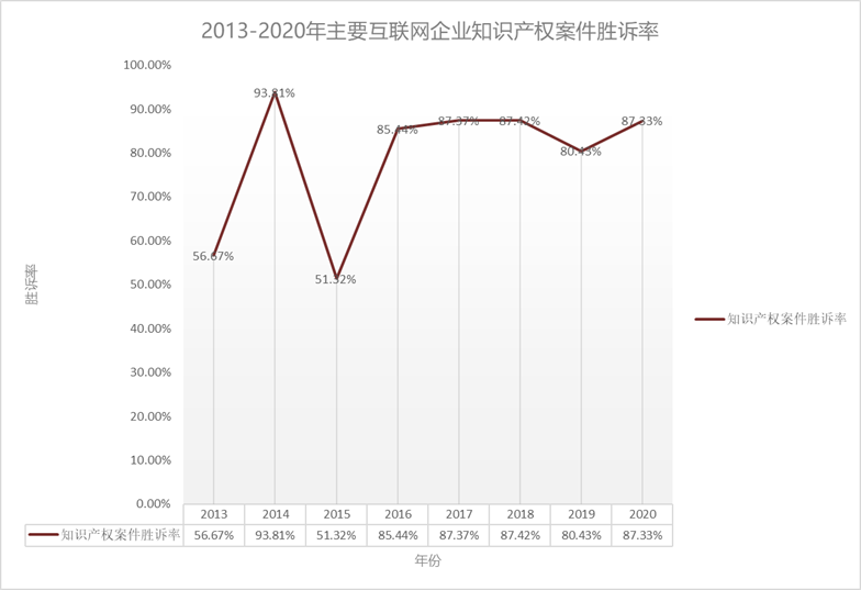 (二)互聯(lián)網(wǎng)企業(yè)知識產(chǎn)權(quán)案件勝訴率概覽