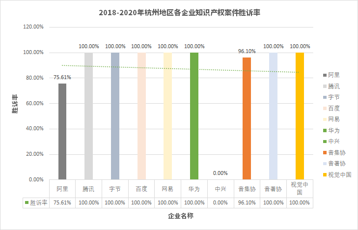 2、互聯(lián)網(wǎng)企業(yè)在杭州地區(qū)知識產(chǎn)權(quán)案件勝訴率情況