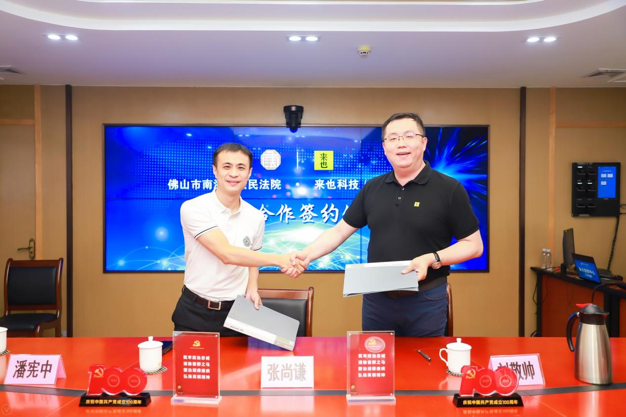8 月 31 日,來(lái)也科技與廣東省佛山市南海區(qū)人民法院戰(zhàn)略合作簽約儀式舉行,會(huì)上佛山市南海區(qū)人民法院黨組成員、執(zhí)行局局長(zhǎng)張尚謙與來(lái)也科技合伙人兼副總裁劉敬帥簽署戰(zhàn)略合作協(xié)議,正式建立合作關(guān)系;隨后舉行揭牌儀式,宣布 RPA+AI 法院數(shù)字化服務(wù)實(shí)驗(yàn)室成立,雙方參觀了實(shí)驗(yàn)室并展開(kāi)深度探討。