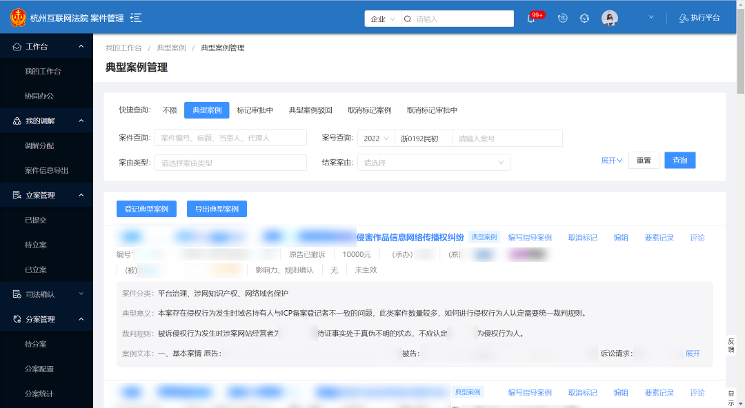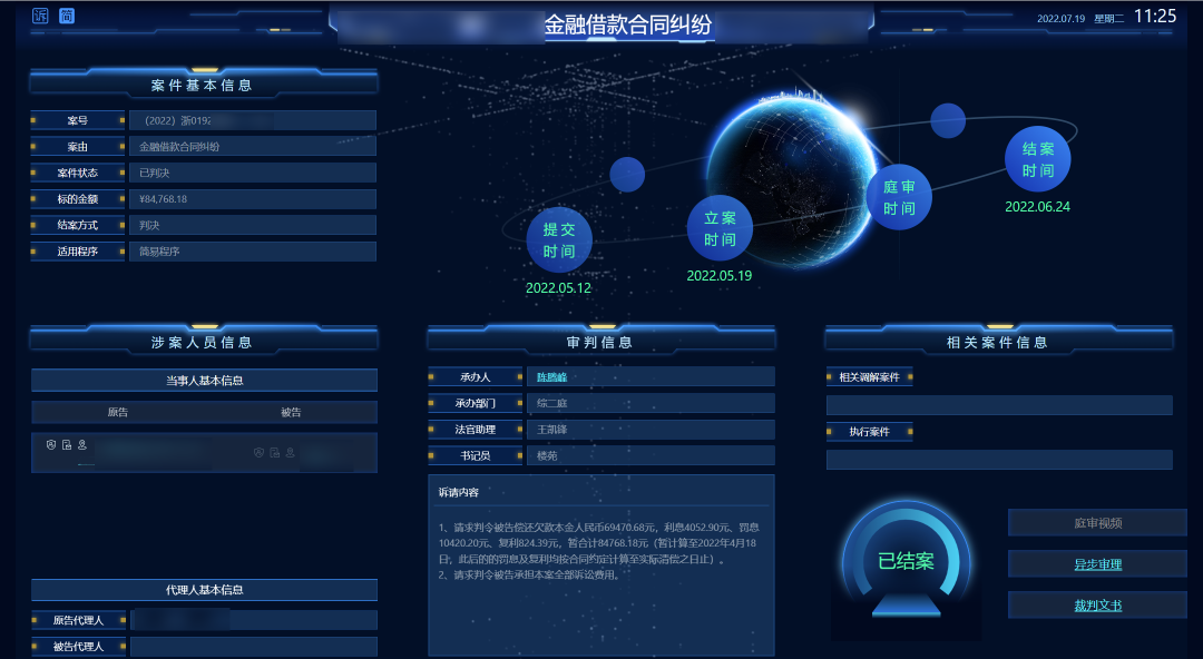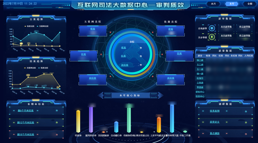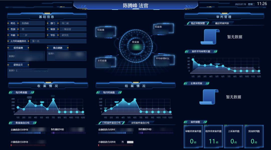 案件數(shù)字畫(huà)像整合全院的審判、執(zhí)行、人員、流程等數(shù)據(jù),對(duì)結(jié)案率、服判息訴率、改判發(fā)回瑕疵率等核心質(zhì)效指標(biāo)進(jìn)行監(jiān)控和預(yù)警,對(duì)在線庭審視頻實(shí)現(xiàn)一鍵點(diǎn)擊播放,對(duì)異步審理對(duì)話實(shí)現(xiàn)一鍵點(diǎn)擊瀏覽,對(duì)結(jié)案文書(shū)實(shí)現(xiàn)一鍵點(diǎn)擊查看,全面實(shí)現(xiàn)案件監(jiān)督管理全程網(wǎng)上運(yùn)行、全程留痕,智能監(jiān)測(cè)審判過(guò)程和結(jié)果偏離態(tài)勢(shì),推動(dòng)審判監(jiān)督管理由盯人盯案、層層審批,向全院、全員、全過(guò)程的實(shí)時(shí)動(dòng)態(tài)監(jiān)管轉(zhuǎn)變。