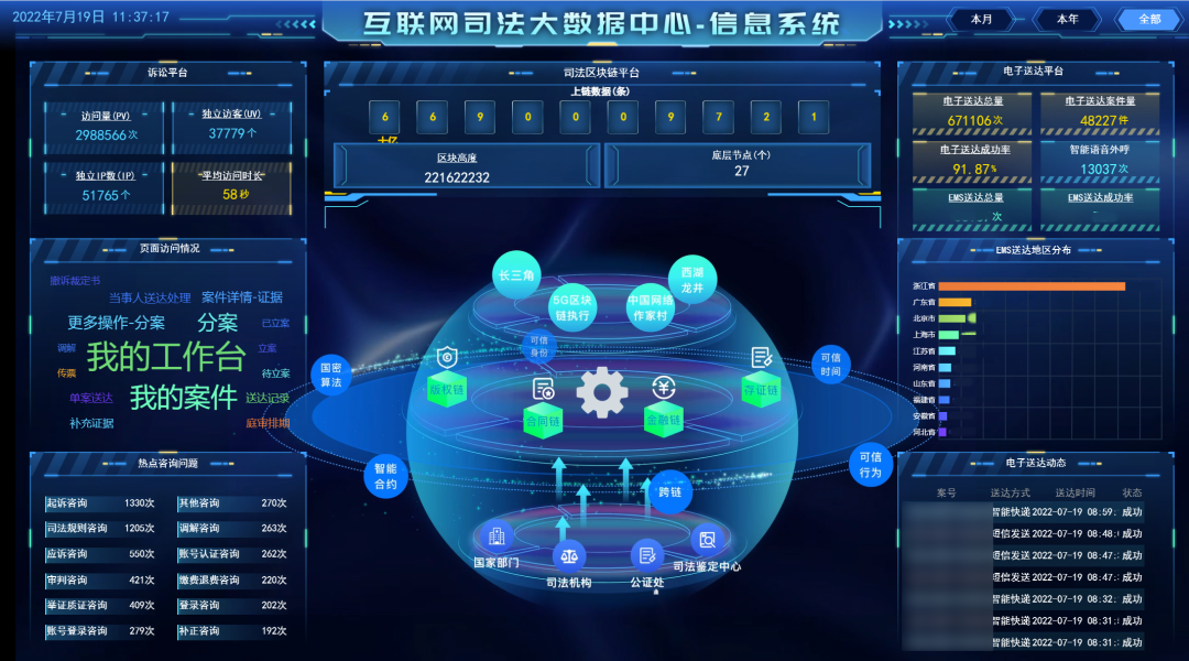 為深入貫徹浙江省委數(shù)字化改革決策部署,落實(shí)浙江高院“全域數(shù)字法院”改革任務(wù),杭州互聯(lián)網(wǎng)法院全面打造互聯(lián)網(wǎng)司法數(shù)智大腦,積極拓寬數(shù)字集成應(yīng)用場(chǎng)景,驅(qū)動(dòng)法院建設(shè)智慧化躍遷,通過(guò)多維度的交互展示、網(wǎng)絡(luò)空間治理專題分析報(bào)告、未來(lái)態(tài)勢(shì)感知和預(yù)警、開(kāi)放大數(shù)據(jù)服務(wù)等多種方式的輸出能力為涉網(wǎng)司法智治及互聯(lián)網(wǎng)空間治理提供有力的智能支撐。