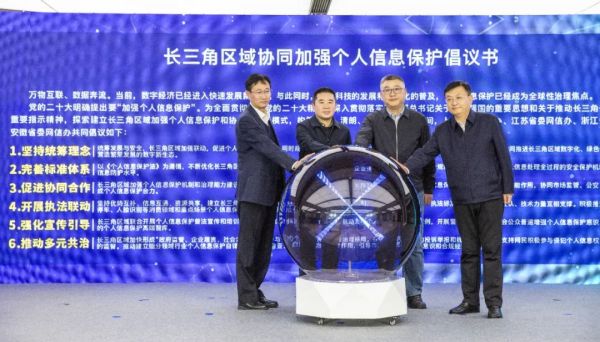 中央網(wǎng)信辦有關(guān)部門(mén)負(fù)責(zé)同志,上海、江蘇、浙江、安徽“三省一市”網(wǎng)信辦負(fù)責(zé)同志出席論壇開(kāi)幕式。開(kāi)幕式上發(fā)布了《長(zhǎng)三角區(qū)域協(xié)同加強(qiáng)個(gè)人信息保護(hù)倡議書(shū)》,提出堅(jiān)持統(tǒng)籌理念、完善標(biāo)準(zhǔn)體系、促進(jìn)協(xié)同合作、開(kāi)展執(zhí)法聯(lián)動(dòng)、強(qiáng)化宣傳引導(dǎo)、推動(dòng)多元共治等六項(xiàng)倡議。華東政法大學(xué)、上海社科院聯(lián)合評(píng)估項(xiàng)目組同時(shí)發(fā)布了“亮劍浦江”專項(xiàng)執(zhí)法行動(dòng)績(jī)效評(píng)估報(bào)告。報(bào)告總結(jié)了今年6月以來(lái)上海市網(wǎng)信辦、上海市市場(chǎng)監(jiān)管局會(huì)同相關(guān)行業(yè)主管部門(mén)開(kāi)展消費(fèi)領(lǐng)域個(gè)人信息權(quán)益保護(hù)專項(xiàng)行動(dòng)的成果成效,并就協(xié)同構(gòu)建個(gè)人信息保護(hù)長(zhǎng)效治理機(jī)制提出建議。上海市消保委等參與“亮劍浦江”專項(xiàng)執(zhí)法行動(dòng)的11家優(yōu)秀單位受到表彰。