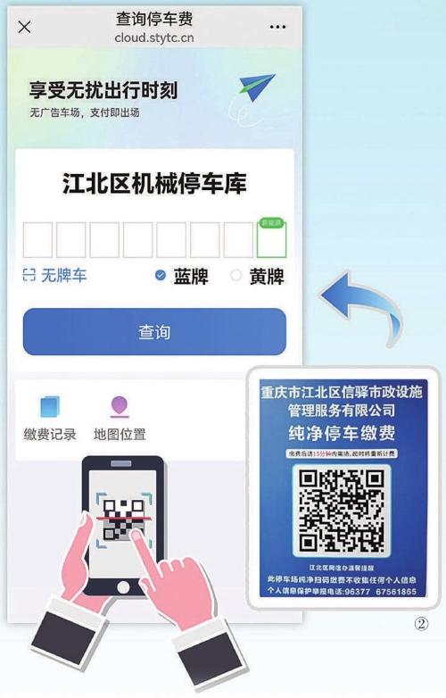 圖②:重慶“純凈版”停車繳費二維碼及掃碼顯示圖。