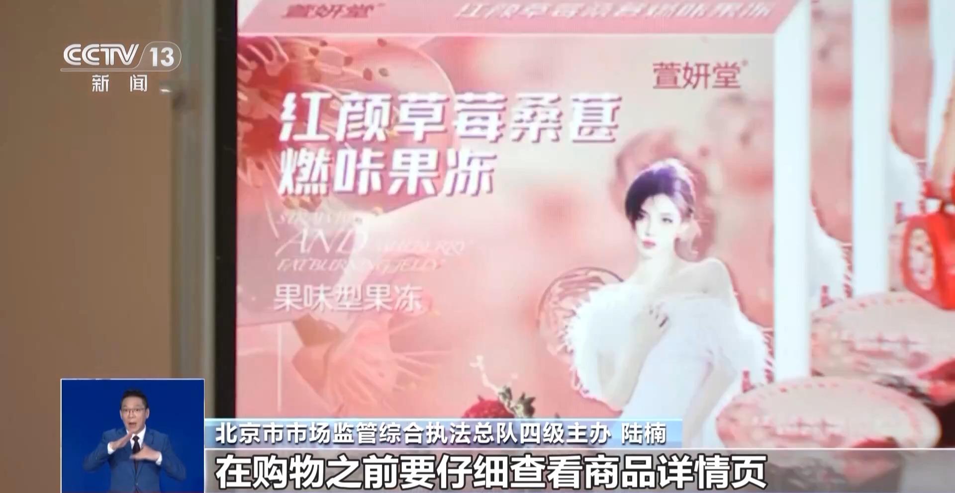 北京市市場監(jiān)管綜合執(zhí)法總隊(duì)三級(jí)主辦 王鑫:我們可以看到這款產(chǎn)品的名稱叫作紅顏草莓桑葚燃咔果凍,它有食品生產(chǎn)許可證的編號(hào),沒有保健食品的藍(lán)帽子標(biāo)志,也沒有藥品的生產(chǎn)許可證,它只是一款普通的食品。