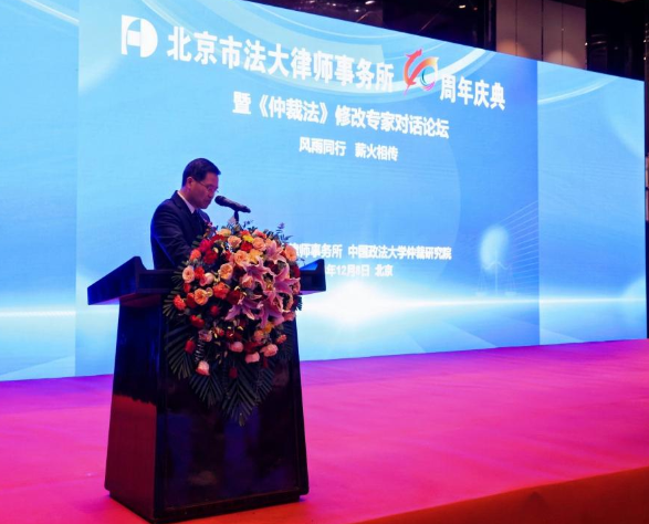 12月8日,北京市法大律師事務(wù)所成立四十周年慶典暨仲裁法修改專家對話論壇舉行。中國政法大學(xué)法學(xué)院與北京市法大律師事務(wù)所“卓越法治人才聯(lián)合培養(yǎng)基地”揭牌。活動對法大律所的發(fā)展歷程進行了總結(jié)和貢獻表彰,對仲裁法修改涉及的熱點和難點進行交流探討。