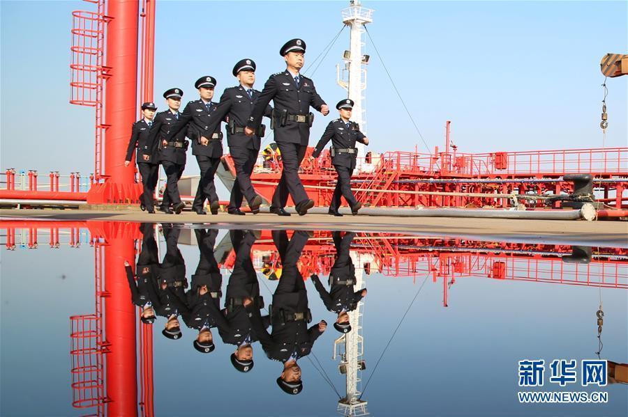 2019年1月1日,在江蘇太倉出入境邊防檢查站,一名男孩幫助父親整理新制服。當日起,全國出入境邊檢機關全員統(tǒng)一換著人民警察制服上崗執(zhí)勤,以全新形象為出入境旅客提供通關服務。新華社發(fā)(計海新攝) 圖片來源:新華網(wǎng)