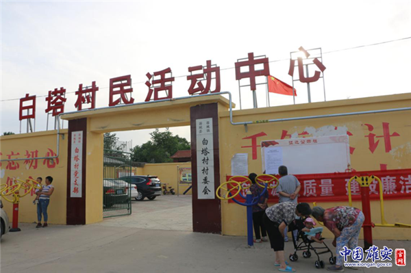 《征收土地和補償安置公告》張貼在容城縣白塔村民活動中心。劉淼 攝