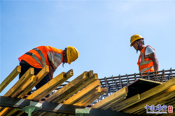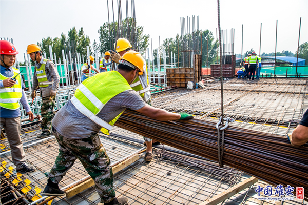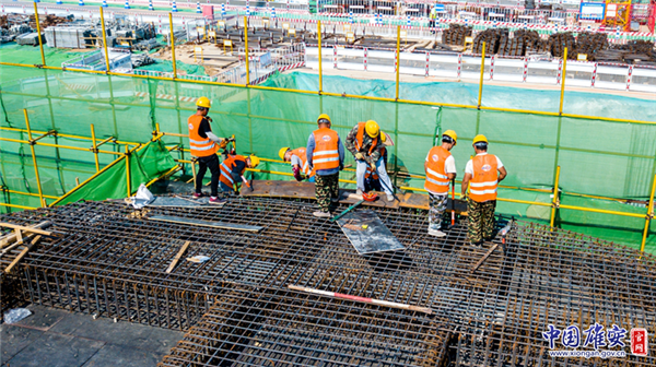 白洋淀引黃大樹劉泵站工程施工現(xiàn)場(chǎng),新區(qū)建設(shè)者為了新區(qū)的明天更加美好,冒著酷暑炎熱,默默付出,他們是值得敬佩的人。中國雄安官網(wǎng)記者馬夢(mèng)迪 攝