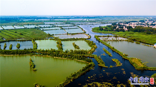 雄安新區(qū)設(shè)立后,為恢復(fù)白洋淀“華北之腎”的功能,構(gòu)建新區(qū)“藍(lán)綠交織、清新明亮、水城共融”的生態(tài)布局,新區(qū)要求將白洋淀生態(tài)水位提高至6.5m~7.0m,原有設(shè)計(jì)條件無法自流入淀,為此需要在引黃入冀補(bǔ)淀工程末端入淀口處新建揚(yáng)水泵站,即白洋淀引黃大樹劉泵站工程,確保黃河水在較高水位條件下也能順利入淀,有效維持淀區(qū)生態(tài)水位。圖為航拍白洋淀引黃大樹劉泵站工程現(xiàn)場(chǎng)。中國雄安官網(wǎng)記者馬夢(mèng)迪 攝